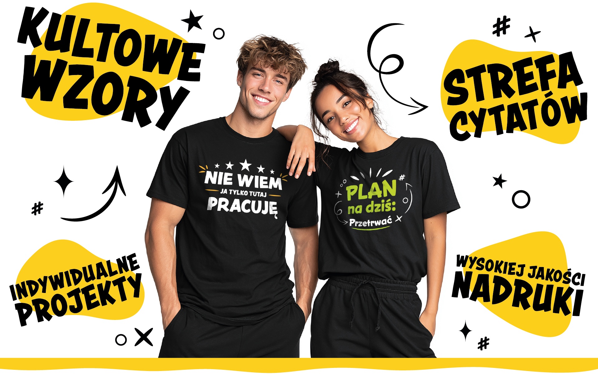 Znajdziesz tutaj zabawne nadruki na dobrej jakości odzieży, które projektujemy sami!